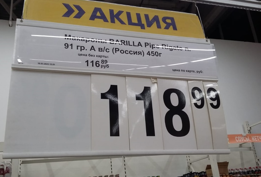 "Те же самые макароны, - пишет Ирина М., - я покупала в этом же магазине по акции за 75 рублей, теперь - в полтора раза дороже, но тоже как бы "акция".