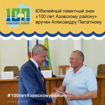 На июньском заседании Азовского районного Собрания депутатов состоялось вручение памятного знака «100 лет Азовскому району» главе администрации Азовского района Александру Палатном