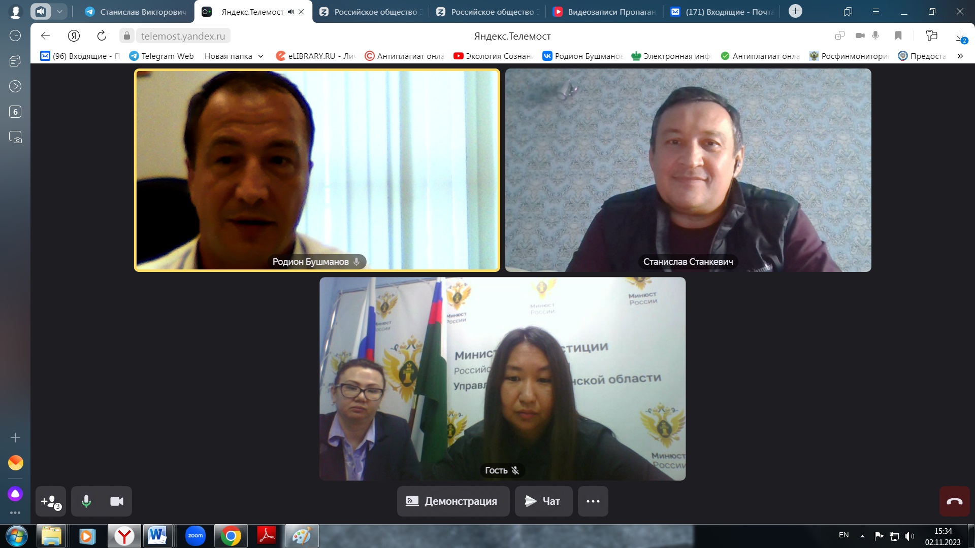 02 ноября 2023 года помощником начальника Главного управления Минюста России по Ростовской области, в режиме видеоконференции,