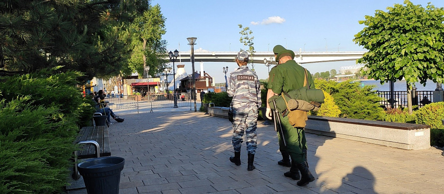 Фото: Совместный патруль полиции и военных на набережной Ростова, кадр из архива 1rnd