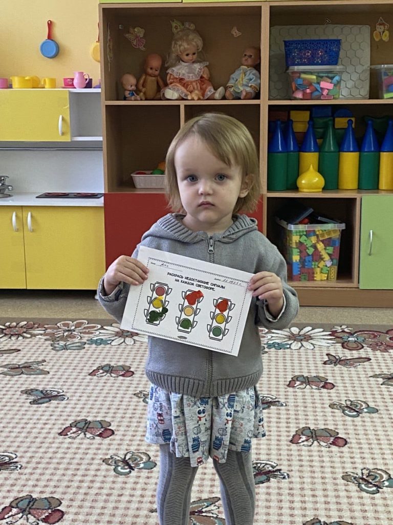 Для малышей были организованы игровые ситуации «Зайка переходит дорогу», «Мишутка едет на автобусе», ребята играли в дидактическую игру «Зажги светофор». Проводились беседы «Наш друг светофор», «Я пешеход». Рассматривали иллюстрации, рисунки с изображением улиц, слушали чтение художественной литературы.
