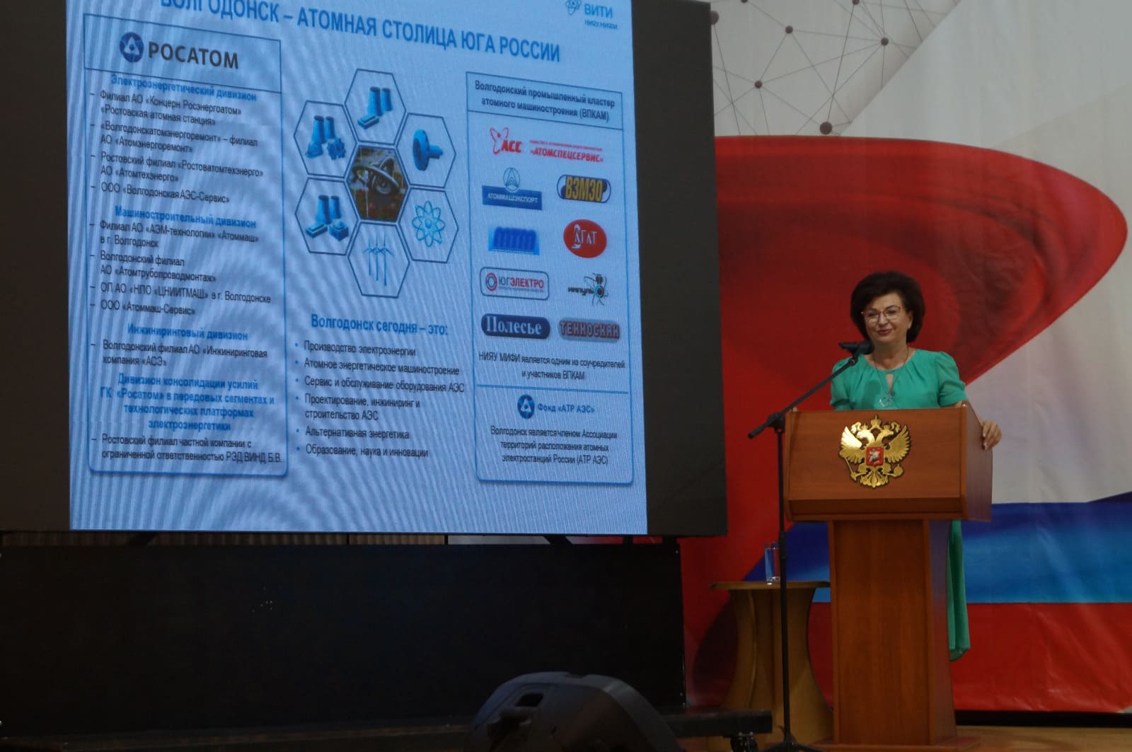 К участникам смены обратилась руководитель Волгодонского инженерно-технического института НИЯУ МИФИ, депутат Законодательного Собрания Ростовской области Валентина Руденко, рассказав о городе и вузе, о перспективах обучения в ядерном университете и возможностях дальнейшей реализации себя в профессиональной сфере. После чего поставила подпись в «Дневник лагеря», дав таким образом старт смене.