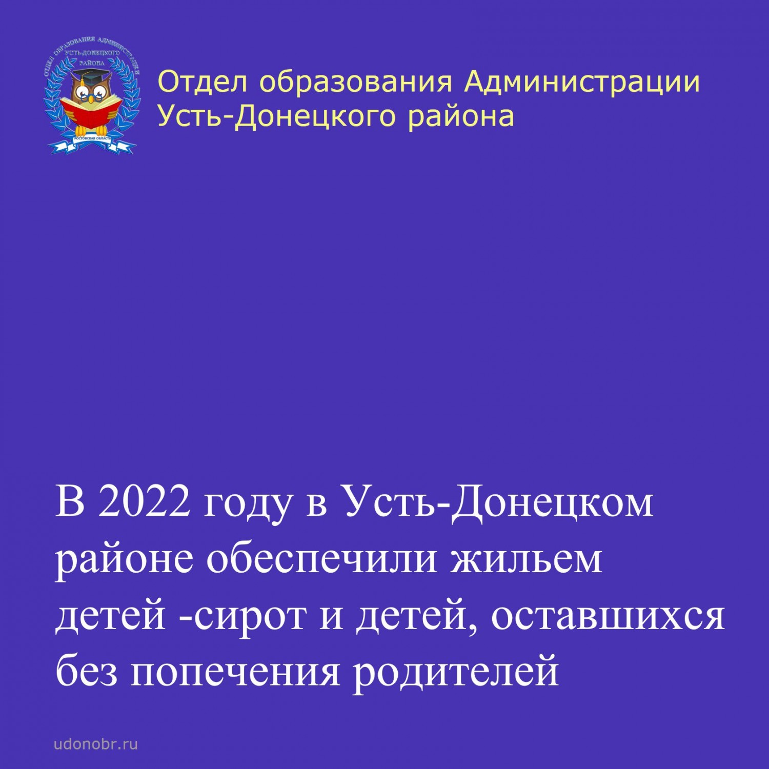 В Усть-Донецком районе в 2022 году планировалось обеспечить жилыми помещениями четверых детей из категории дети-сироты и дети, оставшиеся без попечения родителей.