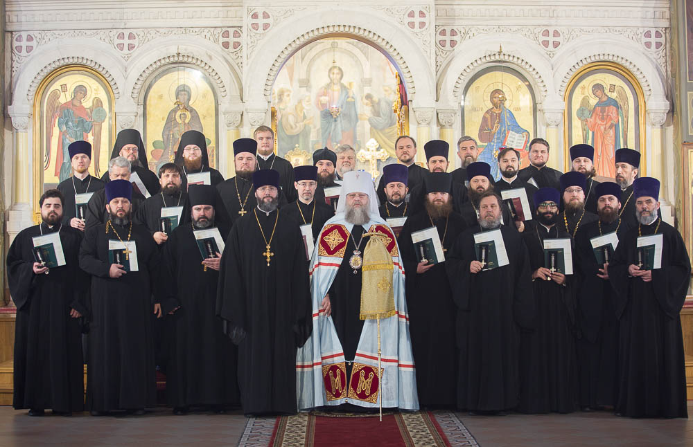 В ответном слове к преподавателям и выпускникам духовной школы митрополит Меркурий отметил: "Почему человеку нужно получать высшее образование? Потому, что человек не может не совершенствоваться, не стремиться к этому. А особенно это касается пастырей: если он живет, но при этом не ищет ответы на возникающие у него вопросы, если он не подходит к осмыслению вызовов современной жизни с позиций разума и духа, то, безусловно, этот человек духовно и интеллектуально оказывается бесплодным для своей паствы. И, наоборот, священник ищущий ответы на жизненные дилеммы, способный воспитать себя не только для требоисполнения, но для истинного пастырства, - такой человек приносит добрый плод в своей жизни, обрастает новой паствой, духовно обогащает окружающих его людей. И только так он исполнит повеленное ему Господом."