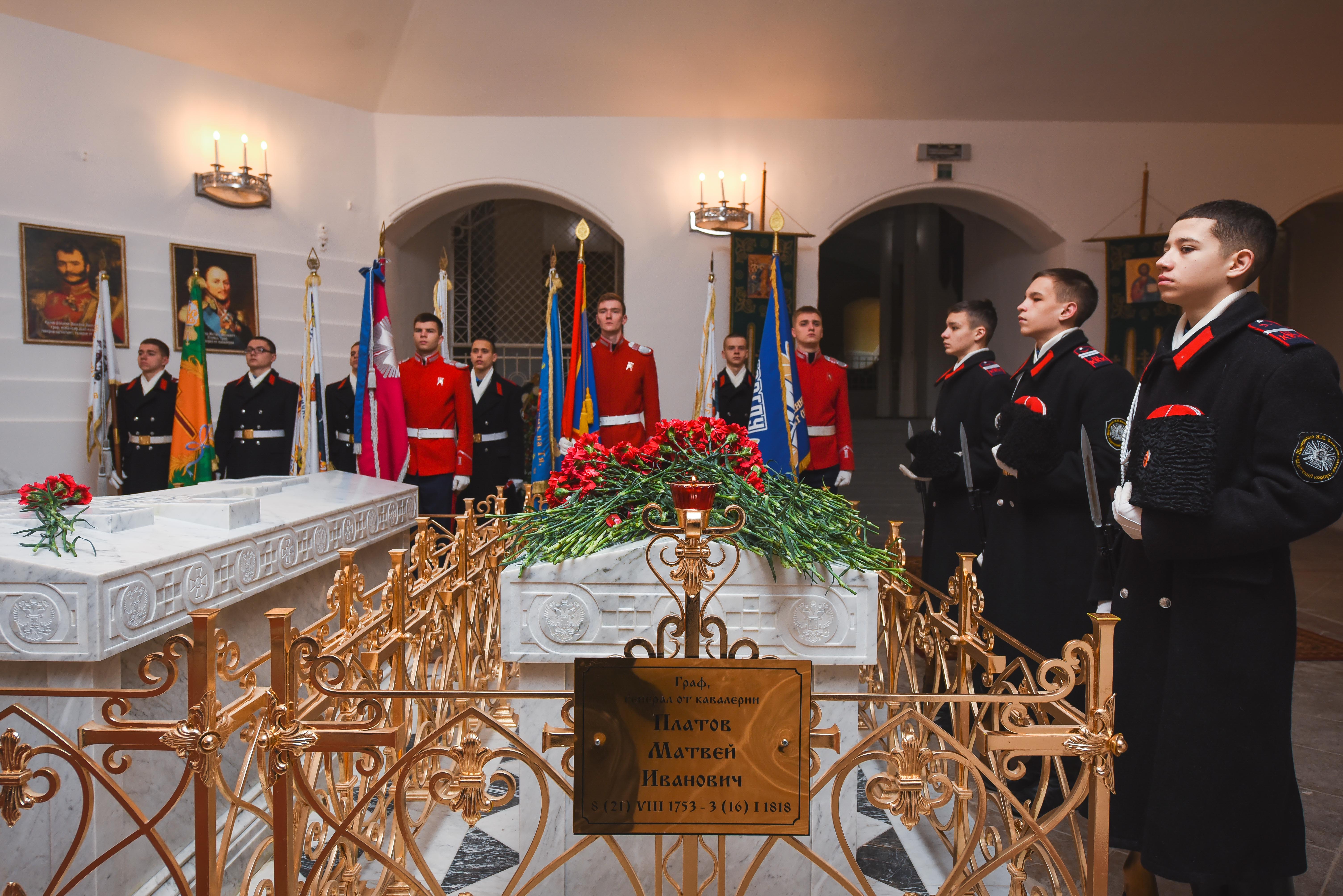 Останки Платова покоятся в усыпальнице «Второго солнца Дона», именно там 16 января была отслужена панихида по основателю столицы мирового казачества.
