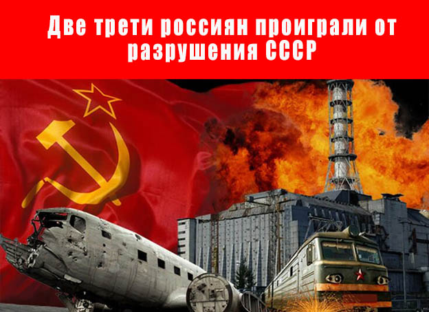 Более 74% россиян проиграли от разрушения СССР. Столько же голосовали за его сохранение в 1991 году на референдуме о сохранении государства. Как и многие действия властей со времен перестройки, это было актом разрушения Союза, ведь само его существование ставилось под вопрос. Тем не менее при явке 80% поддержали его сохранение 78%, в т.ч. 71% россиян. Но воля народа была предана и продана.