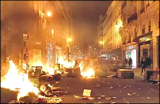 «Мы здесь!», «Париж поднимайся!», «Все ненавидят полицию!», — пели некоторые протестующие. Молодые демонстранты в капюшонах возводят баррикады из заграждений, отмечает в блоге журналист Сильвен Аллеман. Таблички гласят: «Март 2023 года — это новый май 68-го» с отсылом на студенческие бунты 55-летней давности, изменившие страну.