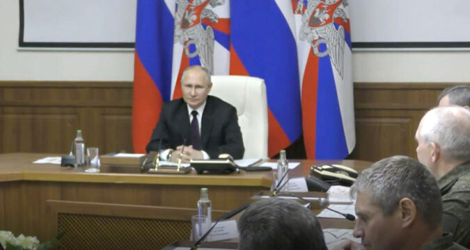 Отмечается, что российский лидер заслушал доклады начальника Генерального штаба Вооруженных Сил РФ Валерия Герасимова, а также командующих направлений и других высших офицеров группировки.