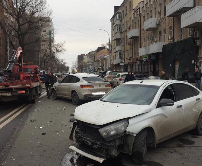 LADA Vesta собрала на ДТП два BMW, Mercedes и Mini Cooper в центре Ростова-на-Дону