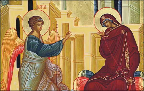 Войдя к Марии, Архангел сказал: «Радуйся, Благодатная! Господь с Тобою! Благословенна Ты между женами». Юная Мария, смутившись, размышляла, что бы это значило, а Архангел продолжал: «Не бойся, Мария, Ты обрела благодать у Бога! Ты «зачнешь во чреве, и родишь Сына, и наречешь Ему имя Иисус. Он будет велик и будет Сыном Всевышнего!»