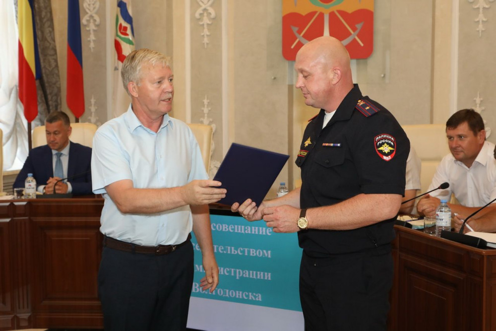 3 июля профессиональный праздник отметили работники Госавтоинспекции (ГИБДД) – дорожной полиции в составе МВД России. Глава администрации Волгодонска Сергей Макаров на аппаратном совещании поздравил начальника отдела ГИБДД МУ МВД России «Волгодонское» Владимира Вострикова – и в его лице всех сотрудников отдела — с этой датой и вручил приветственный адрес.