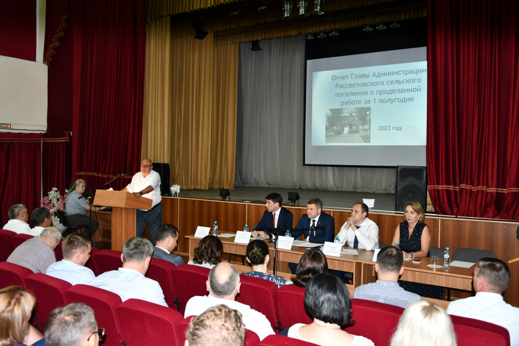 Глава Администрации Аксайского района Константин Доморовский принял участие в отчёте главы Администрации Рассветовского сельского поселения. Отчёт состоялся 18 июля в сельском доме культуры посёлка Рассвет. На встречу с главой прибыли порядка 200 жителей посёлка Рассвет. В ходе отчёта глава администрации поселения отчитался о работе администрации за первое полугодие 2023 года и планах по развитию поселения на второе полугодие.