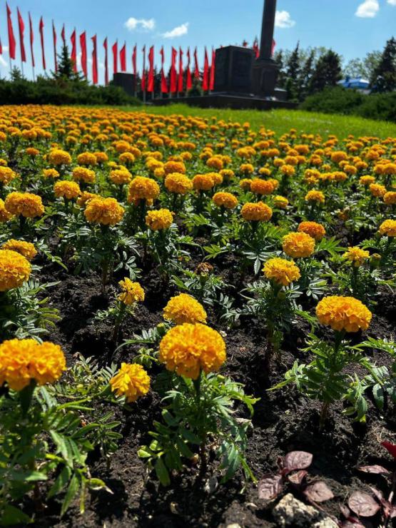 По его словам, клумбы в городе теперь украшают 900 тыс цветов, в том числе тагетисы, бегония, алиссум, агератум, газания, петуния и пр.