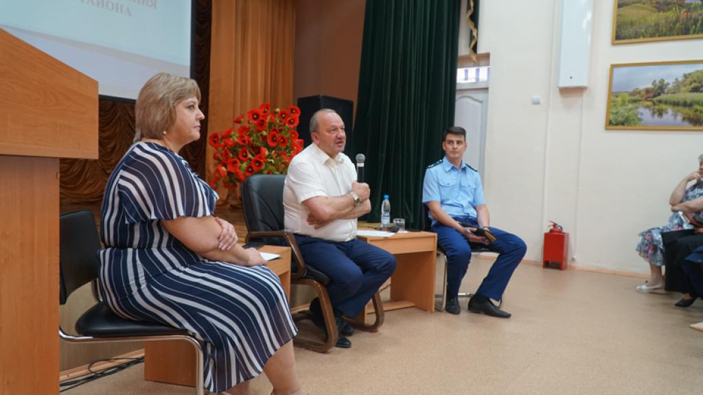 На прошлой неделе в актовом зале Усть-Донецкой школы №1 состоялась встреча главы Администрации Усть-Донецкого района Виктора Гуснай, прокурора района Александра Предко с представителями родительских комитетов образовательных организаций. В ходе встречи были обсуждены различные вопросы, касающиеся системы образования и безопасности детей.