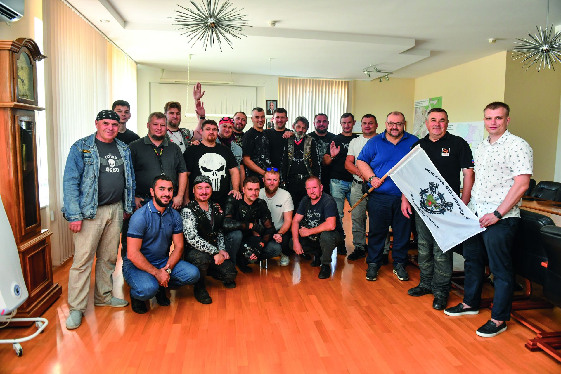 Волжские металлурги, увлекающиеся мотоциклами, уже второй год подряд проводят мотопробеги. Появление байкеров было громким – на площадь перед заводоуправлением с музыкой и флагами въехали 15 байков. Стальные машины выстроились в ряд перед заводоуправлением. На встрече с управляющим директором говорили о металлургии и мотобайках. Волжане подарили Сергею Билану флаг своего мотоклуба. Теперь он займет почетное место в кабинете управляющего директора.