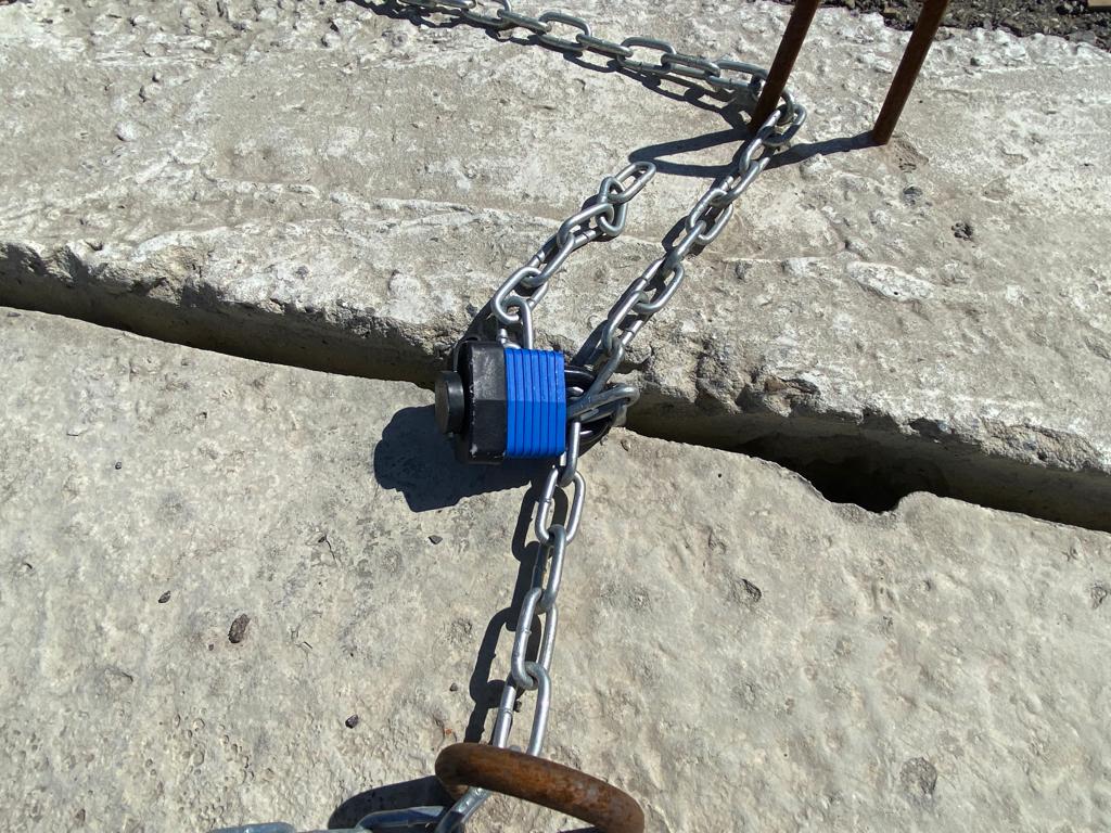 Итак, гражданин К. (назовём его так) решил, что проезжающие автомобили создают много пыли, взял и несколько месяцев назад перекрыл проезжую часть бетонными блоками, металлической конструкцией (ровно такой, какой ГИБДД перекрывает переулки на День города) и скрепил это всё цепями на замках.