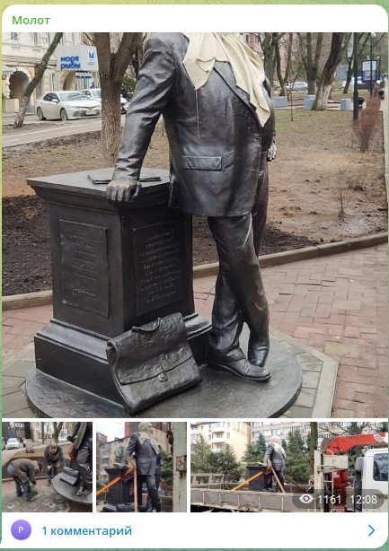 Он долгое время лежал на складе В Ростове на ул. Пушкинской установили монумент сатирику Михаилу Жванецкому.