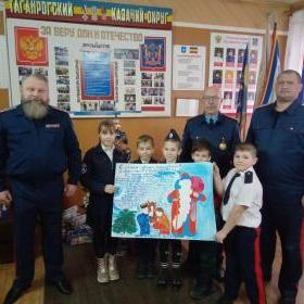 В ответ дети подарили казакам свои новогодние рисунки и рождественские поделки.