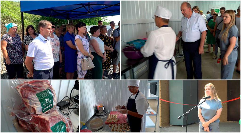 Красную ленточку перерезали глава Администрации Усть-Донецкого района Виктор Гуснай, председатель кооператива Антонина Комарова и представитель от личных подсобных хозяйств Надежда Мурзина.