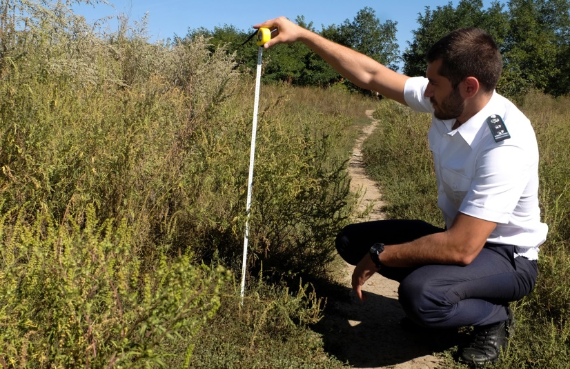 Напоминаем, что амброзия полыннолистная (Ambrosia artemisiifolia) — злостный карантинный сорняк. Вред амброзии в районах массового ее распространения исключительно велик. Она причиняет как биологический, так и технологический ущерб окружающей среде, земледелию. Развивая мощную надземную массу и корневую систему, сильно угнетает культурные растения. Помимо иссушения и истощения почвы, амброзия затеняет от солнечного света возделываемые растения, что приводит к резкому снижению, а то и полной потере урожая. Амброзия полыннолистная опасна и для здоровья людей. Во время цветения она образует огромное количество пыльцы, многократное вдыхание которой вызывает заболевание аллергией. Размножается амброзия только семенами, причем, не только вызревшими. К тому же растения амброзии полыннолистной хорошо переносят затопление и многократные скашивания, формируя при этом от 5 до 15 побегов. Массовые всходы амброзии появляются в мае-июне. Цветение в нашей зоне начинается в июле – начале августа и продолжается до октября.