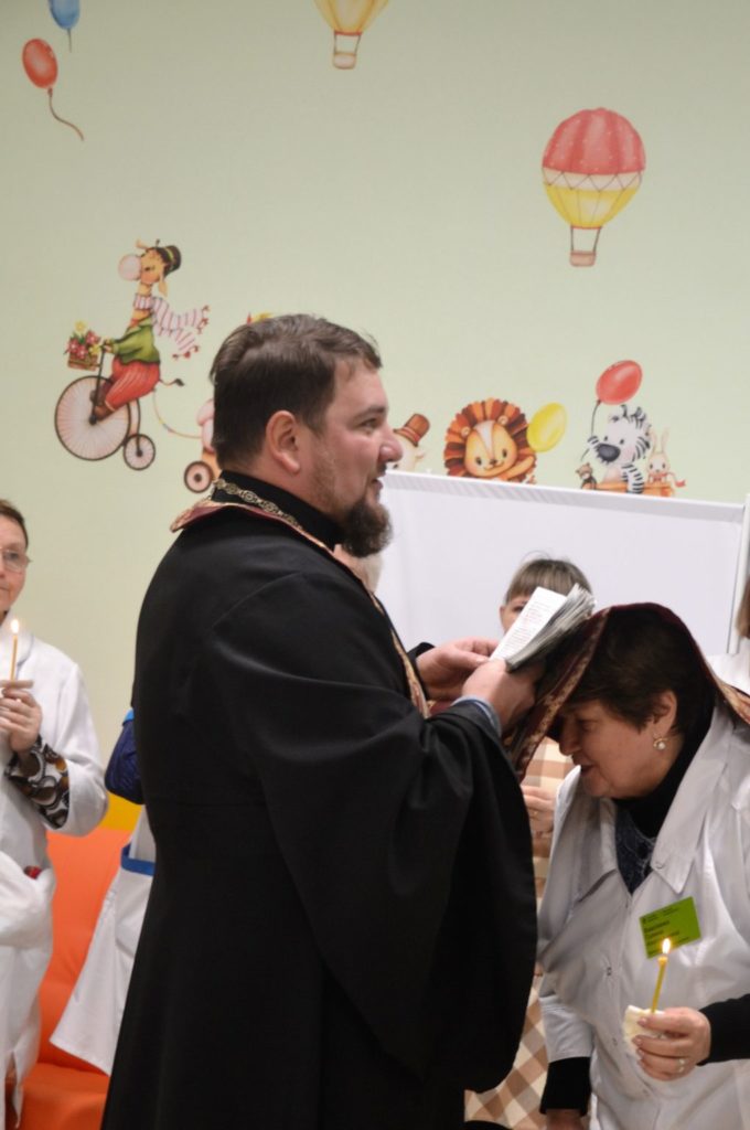 «Болезнь ребенка для любого человека часто бóльшее горе, чем его собственная болезнь. Ваше служение очень важное, оно требует от вас не только профессиональных навыков, но и особого расположения души: сострадания, сочувствия, внимание и к ребенку, и к его родителям, — обратился к медикам Благочинный приходов Донецкого округа. — Мы сегодня освящаем ваш дом, где вы трудитесь и совершаете благородное дело служения детям и их родителям».
