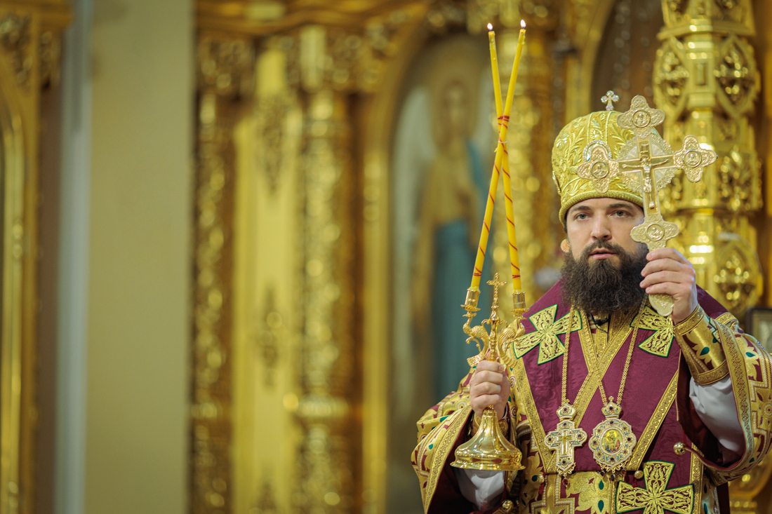 Его Преосвященству сослужили настоятель собора иерей Леонтий Дмитриев, клирики собора.