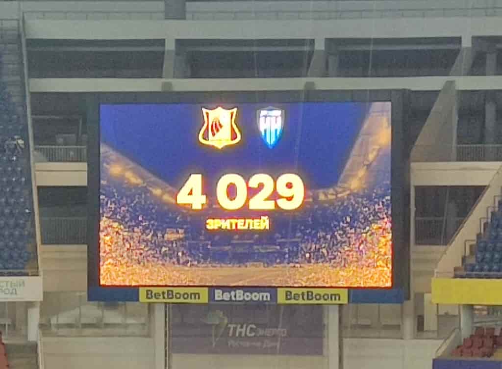 22 февраля 2023 года на кубковом матче донского клуба с «Уралом» побывало 5877 зрителей. 4 марта 2023 года на поединке чемпионата с «Локомотивом» — 4907. В минувшее воскресенье на игре с «Пари НН» собралось 4029 человек.Падение очевидно даже по сравнению с прошлым годом, когда при уже работавшей системе Fan ID минимальный сбор публики был зафиксирован на матче ростовчан с «Оренбургом» (4458). Стало быть, воскресная цифра — новый антирекорд.