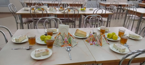 Проверено санитарное состояние обеденного зала. Столы чистые. Состояние столовой мебели находится в удовлетворительном состоянии, число посадочных мест соответствует количеству питающихся за одно посещение. Имеется график посещения столовой учащимися. Для приёма пищи в расписании предусмотрено достаточное время – 20 минут. За каждым классом закреплено место в столовой. Дети принимают пищу сидя. Санитарное состояние обеденного зала удовлетворительное. Освещенность зала достаточная. Температурный режим комфортный. Состояние санитарной одежды у сотрудников пищеблока – хорошее.