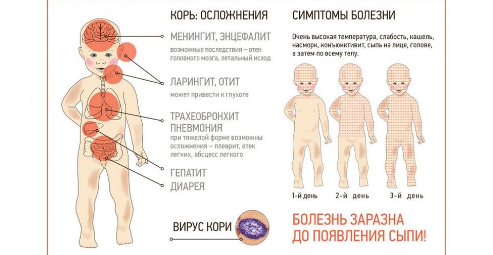 При кори возможны осложнения, связанные с работой различных органов и систем организма, в том числе центральной нервной и дыхательной систем, желудочно-кишечного тракта.