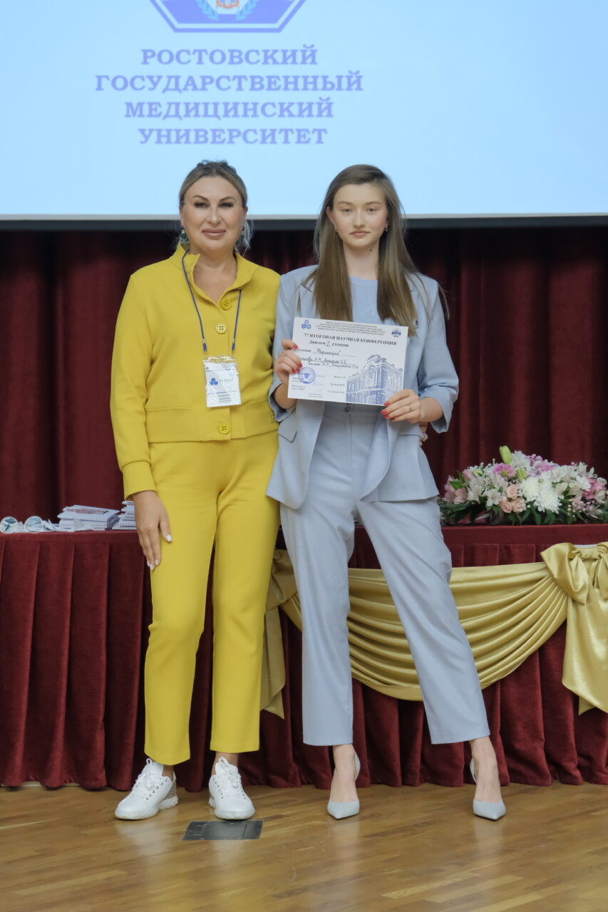 В этом году секция для участников довузовского образования была включена в повестку конференции после трехлетнего перерыва. Это — уникальная возможность для школьников, которые обучаются в рамках проектов РостГМУ, сделать первый шаг в науку. Победителями стали Т.М.Згонников и Т.О.Арутюнова за исследование особенностей анатомического строения позвоночного столба и аномалии развития. Научный руководитель Е.В.Чаплыгина и Б.М. Калашаов.