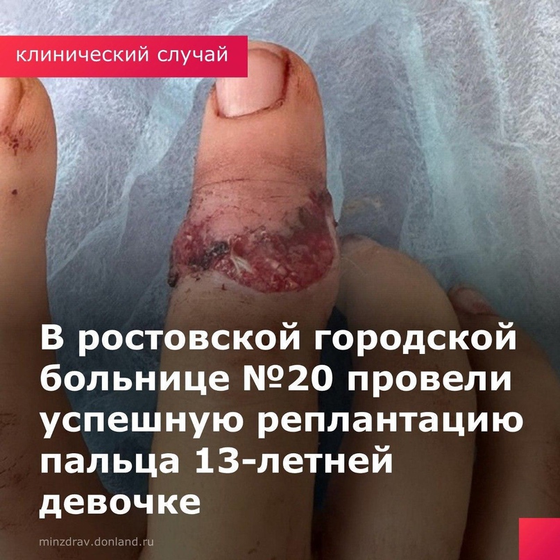 В РОСТОВСКОЙ ОБЛАСТИ ВРАЧИ ВОССТАНОВИЛИ ШКОЛЬНИЦЕ ПАЛЕЦ ПОСЛЕ ПОЛНОГО ОТРЫВА В РАЙОНЕ СРЕДНЕЙ ФАЛАНГИ