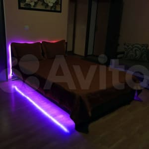 Крепкая двухспальная кровать с цветной подсветкой, раздвижной диван и еще одно дополнительное односпальное место позволят разместиться пяти гостям.