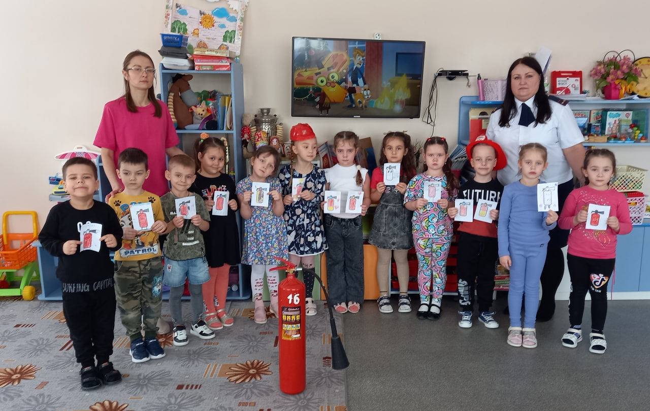 Рассмотрели наиболее распространённые, на сегодняшний день, виды огнетушителей и принцип их работы, посмотрели познавательный мультфильм.