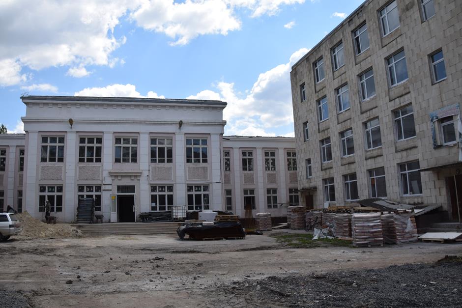 На текущую дату подрядной организацией демонтированы внутренние инженерные коммуникации, оконные и дверные блоки. Установлены металлопластиковые окна. В настоящее время выполняется устройство фасадов, кирпичная кладка перегородок, усиление проемов.