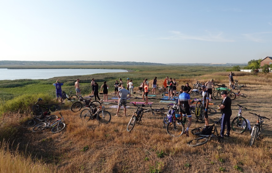 Несколько таких поездок совместили с занятиями йогой для всех желающих. Профессиональный преподаватель йоги Евгений Божко (он окончил известный институт йоги и обладает многолетним опытом) предложил свои услуги для всех участников велопохода. Это дало возможность не только насладиться красотой природы, но и заняться своим здоровьем.