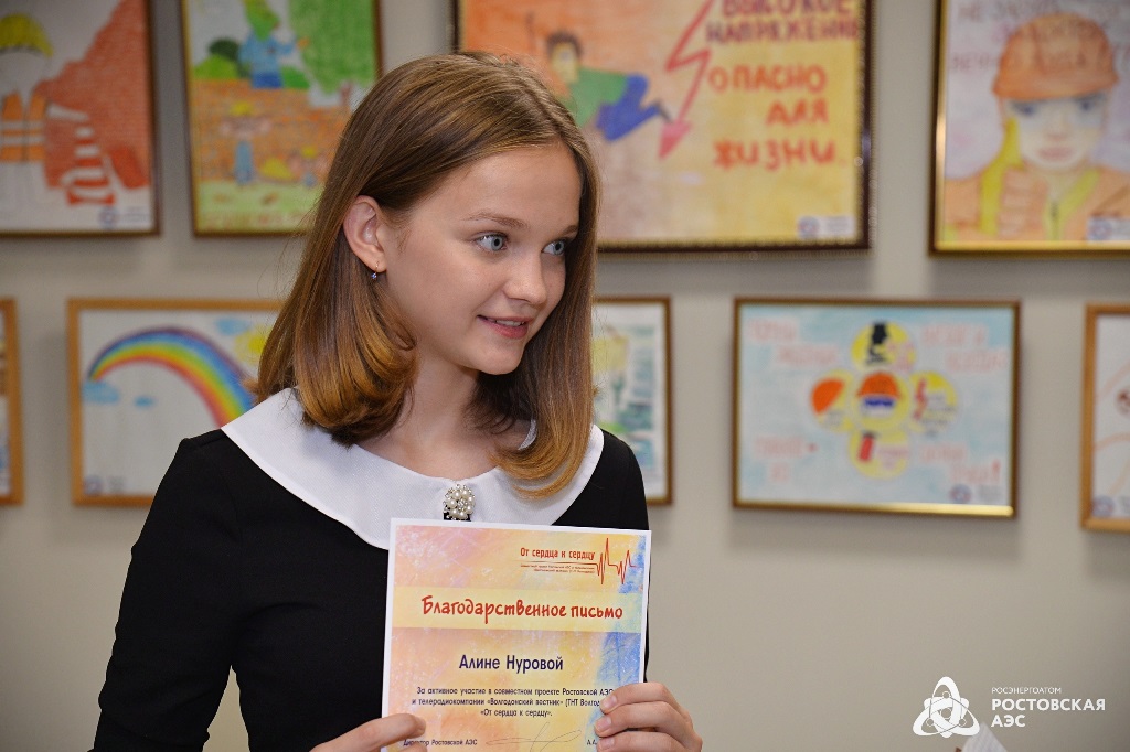 Девятый год подряд Ростовская АЭС проводит благотворительную акцию «От сердца к сердцу», в рамках которой собирает детские рисунки, оформляет их и передает в дар медучреждениям региона. Яркие, позитивные картины в дальнейшем украшают стены больничных палат и дарят медикам и пациентам хорошее настроение.